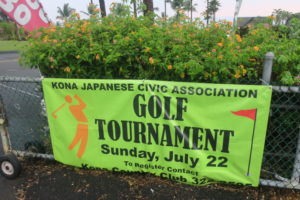 途中、Kona Country Clubを通過した際に日本人のトーナメントやるとの垂れ幕を発見。