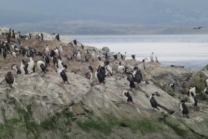出航して30分ほどで結構ウシュアイアの街からも離れてきました。途中で鳥たちに多分餌付けしている船を見たりしながら遠くにエクレルール灯台が見えてきました。