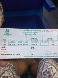 電車乗り場へ移動しますが、若干迷いましたが無事プラットフォームに到着しました。チケット売り場でバンコクまでに費用は20パーツとの事。バンコク到着後にATMにてお金を出したので小額紙幣がなく500パーツを私と嫌な顔をされるが無事電車に乗り込む事ができました。