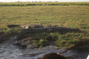 で、バッファローの群れの近くにはワニが・・・まさに野生の王国に私いるんですね。