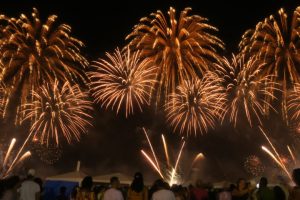年越しと同時に花火が始まりました。