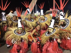 前方で花火の音がし山車が動き始めました。どうやらカーニバルに向かい出発のようです。そのまま、何度か止まりながらサンバ会場であるSambódromo da Marquês de Sapucaí(サンボードロモ)が見えて来ました。で、ここら辺から係りの人から写真撮らないように言われます。事前にも聞いていたのですが、サンバカーニバルで踊っている最中にカメラ等を出すと減点の対象になるらしく係りの人からかなりきつく怒られます。ちなみに、私は一生懸命踊り歌っていたので持って来たバックを係りの人が預かってくれるぐらいだったし、多分一生に一回であろうサンボードロモの中でのサンバカーニバル・・・しかも1部リーグを満喫することできました。