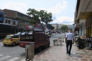 休憩も終わり散策を再開。歩いているとたくさんの楽器屋さんが並んでいる場所に出ました。ここはコロンビアの御茶ノ水といった感じの場所でしょうか?