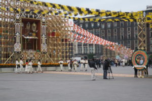 死者の日の仮装をした人達も通過したしそろそろ集合の時間もあるので大聖堂の方に向かい、まだ時間あるのでソカロ広場の祭壇の儀式の見学。思いもよらずロペスオブラドール大統領や死者の日スタートの儀式を見れて少し興奮しながら集合場所に向かいます。