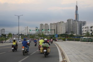 夕日の時間が近づいて来たので、先日地図を見て行こうと決めていた場所へ。場所はSaigon river(サイゴン川)にかかるThu Thiem Bridge。(西側はが川なので)