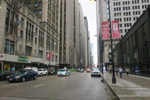 とりあえず、最初はバスで行ける町の北側にあるWrigley Field(リグレー・フィールド)に向かい到着。ここはChicago Cubs(シカゴカブス)の本拠地でいまの時期は当然試合やってません。(というか、工事してました)