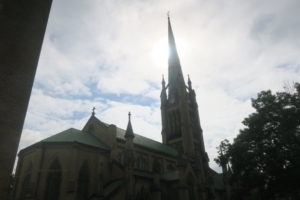 The Cathedral Church of St. James(セント・ジェームズ教会)が見えてきました。鐘がなっていたので時計を見ると中途半端な時間。おかしいなと思い正面に回ると・・・どうやらお葬式をしているようです。ちょっと見学しちゃおっと、(中に入るのは断られっちゃいまたが)