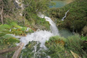 しばらく歩いていくと行列している場所に出ました。そのまま進んでいくとVeliki slap(下湖群大滝)に出ました。すごい迫力です。