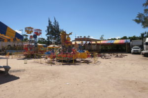 先ほどの黄色い門の先は簡易遊園地。少し見学をしようと中に入るとまだやっていない・・・というかメンテナンス工事中だね(汗)