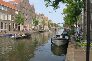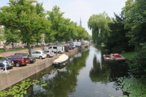 天文台の場所に到着。景色を眺めお堀沿いをPieterskerk, Leiden(聖ピータース教会)方面へ