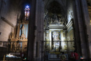 Basílica de Santa Maria del Pi(サンタ・マリア・ダル・ピ教会)に到着しました。入り口に人が立っているのでもしかして有料かもと思いながら中に入ると無料。教会の中は思ったよりシンプルな作りでした。ただ、祭壇は立派な彫刻がたくさんありました。
